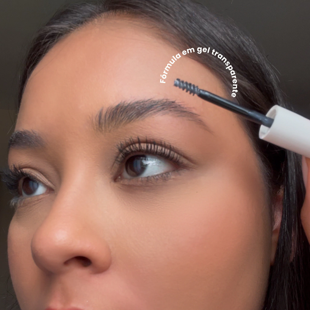 MODO DE USAR: Escove os pelos das sobrancelhas em duas direções: para cima e na diagonal, no sentido das têmporas, espalhando o produto de maneira uniforme.